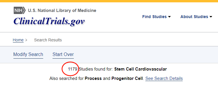 截止2022年12月,在美國國立衛生研究院的最大臨床試驗注冊庫clinicaltrials.gov網站上注冊的有關干細胞治療心血管疾病的臨床研究項目有1179項。