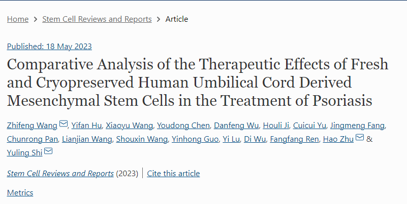 Wang, Z., Hu, Y., Wang, X.等。新鮮和冷凍保存的人臍帶間充質(zhì)干細(xì)胞治療銀屑病療效的比較分析。?干細(xì)胞 Rev and Rep?(2023)。https://doi.org/10.1007/s12015-023-10556-8