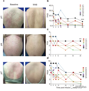 此外,與基線值相比,注射了冷凍保存的 UCMSCs 的銀屑病患者在銀屑病面積和嚴(yán)重程度指數(shù) (PASI)、醫(yī)師整體評(píng)估 (PGA) 和患者整體評(píng)估 (PtGAs) 評(píng)分方面有顯著改善。
