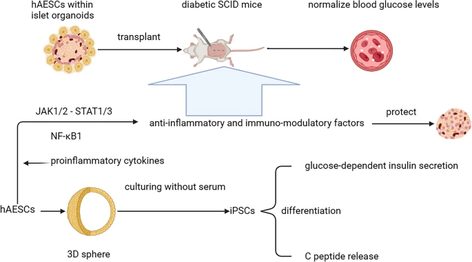 圖2:hAESC在糖尿病治療中的應用和機制