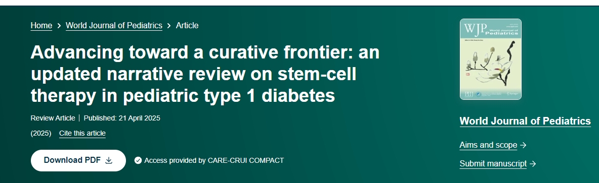 [4]Sulaiman, S., Alaarag, A., Rayyan, N. et al. Advancing toward a curative frontier: an updated narrative review on stem-cell therapy in pediatric type 1 diabetes. World J Pediatr 21, 436–446 (2025). https://doi.org/10.1007/s12519-025-00908-4