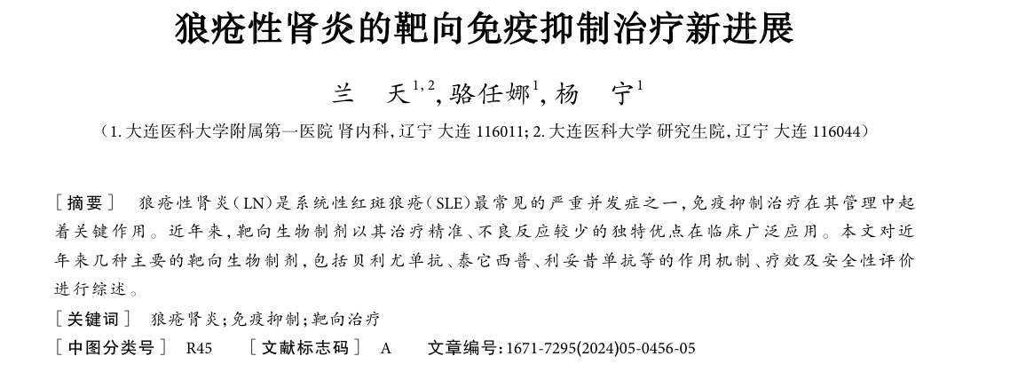 2024年,大連醫科大學附屬第一醫院發表了一項關于狼瘡性腎炎的靶向免疫抑制治療新進展的研究成果。研究指出,狼瘡性腎炎(LN)治療正從傳統序貫治療轉向聯合治療和靶向治療。[1]