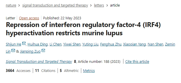 該研究不僅揭示了IRF4作為LN疾病活動度標志物的潛力,還證實靶向IRF4的SM934可通過多靶點調控改善腎損傷并減少自身抗體生成,為開發新型抗狼瘡藥物提供了理論依據和臨床轉化方向。