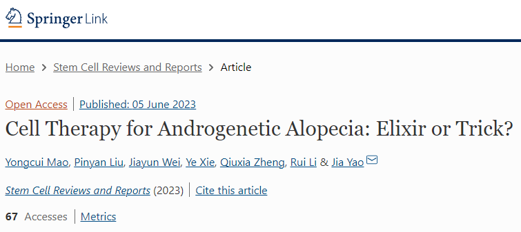 蘭州大學(xué)第一臨床醫(yī)學(xué)院在國際學(xué)術(shù)期刊《干細(xì)胞評論和報告》上發(fā)布了一篇《細(xì)胞療法治療雄性激素性脫發(fā)癥:靈丹妙藥還是小把戲?》的文章,文章就目前干細(xì)胞治療AGA的方法、療效、作用機(jī)制及臨床進(jìn)展進(jìn)行綜述,希望能為脫發(fā)患者在干細(xì)胞治療領(lǐng)域提供更全面的視角。