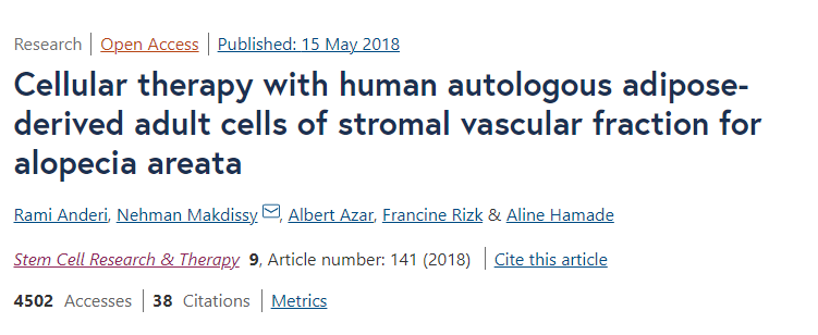 安德里等人報道,所有20名斑禿患者在接受ADSVC治療后均在3-6個月內(nèi)出現(xiàn)了毛發(fā)再生。