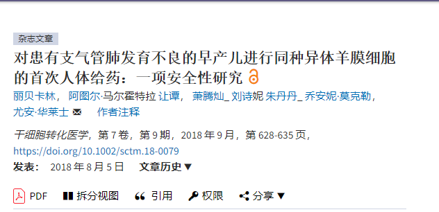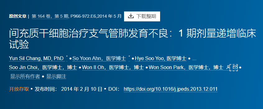 盡管目前正在進行多項MSC治療BPD的臨床試驗,但迄今為止已經完成并報告了兩項早產兒BPD的MSC移植臨床試驗。