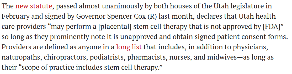 消息原文網(wǎng)址:https://www.science.org/content/article/utah-flouts-fda-law-greenlighting-placental-stem-cell-therap