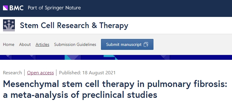 2021年,對24項間充質干細胞治療肺纖維化的臨床前研究進行的薈萃分析,與對照組相比,MSC治療試驗使PF的生存率有所提高。然而,這些研究具有較高的異質性和偏倚風險,而且間充質干細胞的最佳劑量、時機、來源和輸送途徑尚未明確。