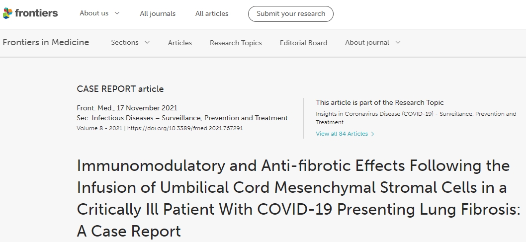 2021年,一份病例報告描述了一名接受機械通氣的患有COVID-19和PF的重癥患者在接受兩劑臍帶來源的MSC后病情有所改善。