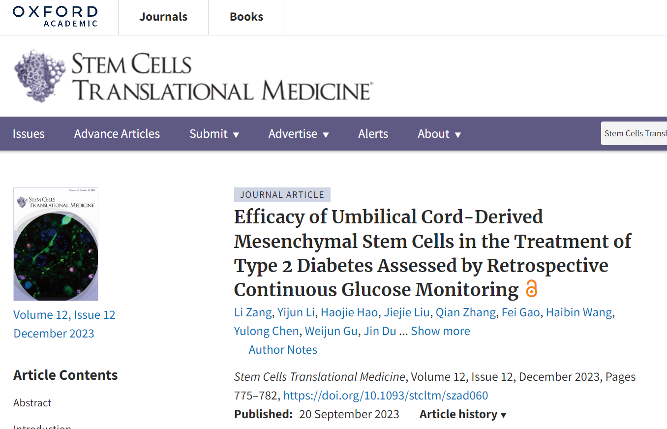 不久前,解放軍總醫院母義明教授在《干細胞轉化醫學》(STEM CELLS TRANSLATIONAL MEDICINE)雜志上發表了一篇研究文章,報告了利用臍帶來源的間充質干細胞治療2型糖尿病的療效成果。