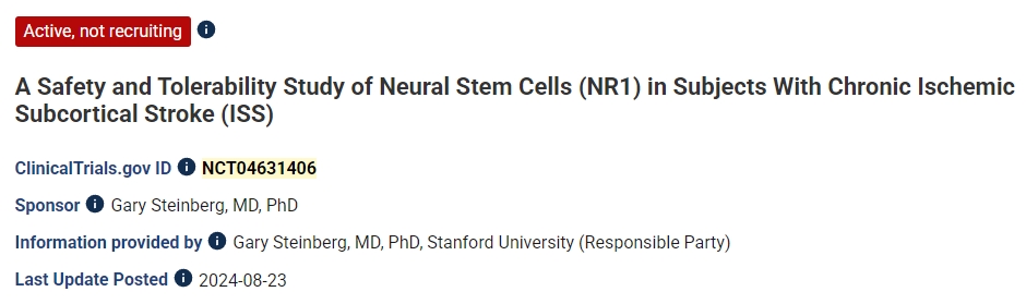 近日,美國加州再生醫學研究所(CIRM)進行了一項運用NR1(一種特定神經干細胞系)的臨床研究聚焦慢性ISS患者的安全性與耐受性的臨床研究[1],旨在填補神經干細胞在慢性期治療中的證據空白。前期試驗提示,干細胞旁分泌效應(如釋放神經營養因子)可能通過抗炎、抗氧化及血腦屏障保護間接促進修復,而NR1的直接神經分化特性或能更精準靶向病灶。