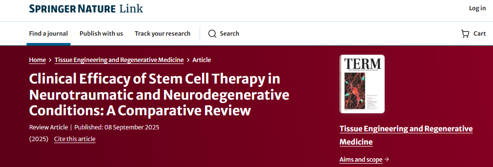 [9]Ku, J.B., Pak, R.J., Ku, S.S. et al. Clinical Efficacy of Stem Cell Therapy in Neurotraumatic and Neurodegenerative Conditions: A Comparative Review. Tissue Eng Regen Med (2025). https://doi.org/10.1007/s13770-025-00757-2