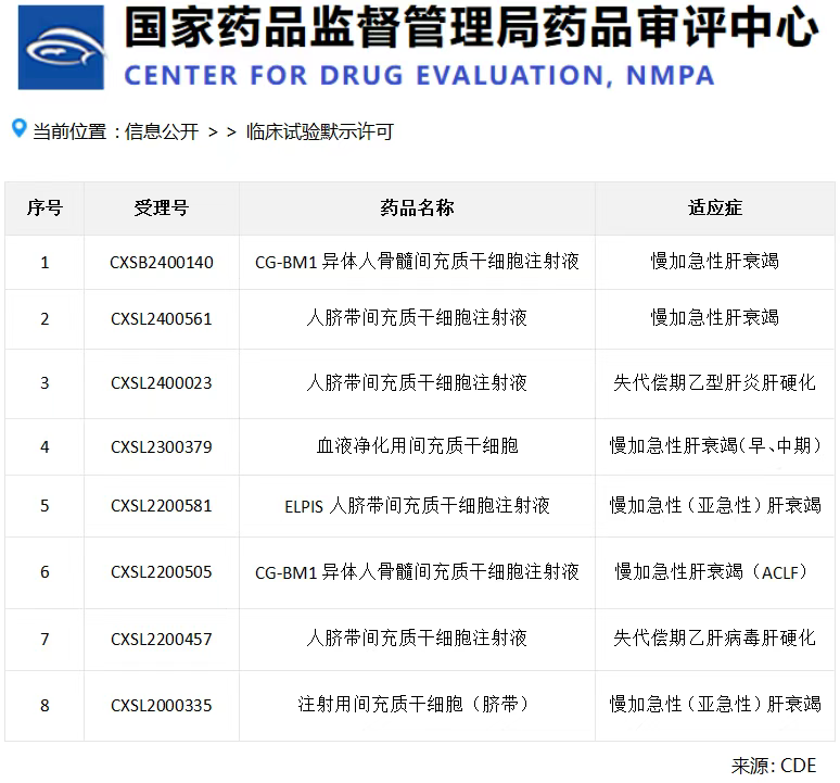 據(jù)國家藥監(jiān)局藥品審評中心數(shù)據(jù)顯示:截止2025年5月30日,國家已默示許可72款間充質(zhì)干細(xì)胞類藥物臨床試驗,其中8款用于肝病治療(占比近12%),且6項直接針對肝衰竭。這不僅反映出國家對干細(xì)胞治療肝病的重視,也說明這一領(lǐng)域已成為干細(xì)胞藥物研發(fā)的重要方向。[6]