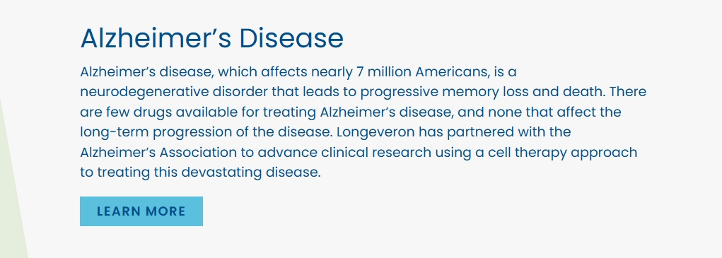 針對阿爾茨海默病,總部位于邁阿密的生物技術公司Longeveron正在開發(fā)間充質干細胞療法laromestrocel,這種細胞來自骨髓,可以分化成各種細胞類型。