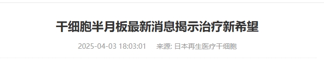 2025年4月干細(xì)胞治療半月板損傷最新臨床進(jìn)展