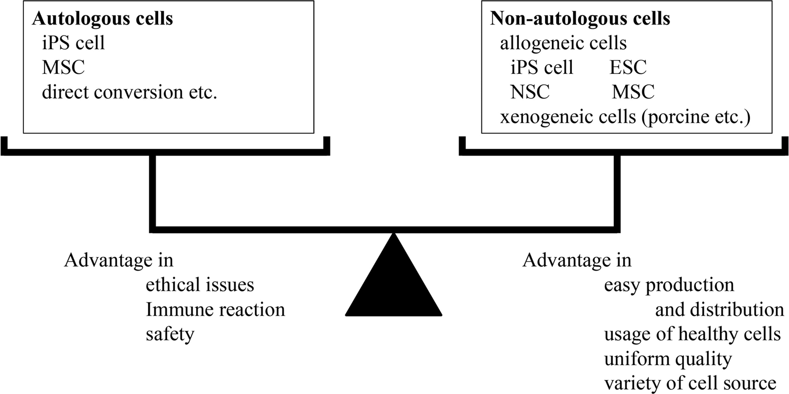 自體細(xì)胞可以在幾乎沒有倫理問題的情況下使用,并且不需要免疫抑制,而非自體細(xì)胞可以像藥物一樣生產(chǎn)并提供統(tǒng)一的質(zhì)量。