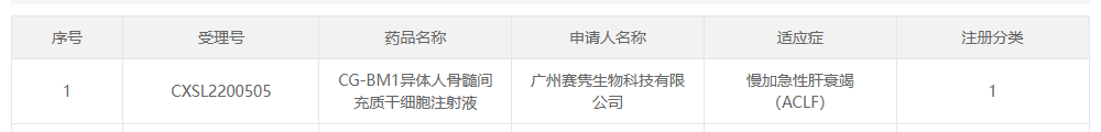 今日,據(jù)國(guó)家藥品監(jiān)督管理局藥品審評(píng)中心(CDE)官網(wǎng)公布,廣州賽雋生物科技有限公司(以下簡(jiǎn)稱“賽雋生物”)“CG-BM1異體人骨髓間充質(zhì)干細(xì)胞注射液”新適應(yīng)癥IND申請(qǐng)獲得臨床默示許可(受理號(hào):CXSL2200505)。獲批適應(yīng)癥為:慢加急性肝衰竭(ACLF)。