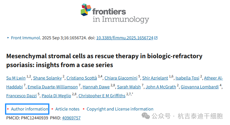 2025年9月,英國倫敦國王學院醫院的一項臨床研究首次報告了異體臍帶來源間充質干細胞(UC-MSCs)用于治療三例重度、且對多種生物制劑均無應答的難治性銀屑病成人患者的情況。