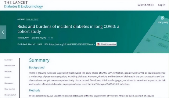根據醫學期刊《柳葉刀·糖尿病與內分泌學》2022年3月發布的研究揭示,在過去一年里感染新冠并痊愈的患者,較從未感染新冠的對照人群相比,新確診糖尿病的大概概率高出40%。用通俗的語言來講,大概有1%的新冠患者如果不感染病毒,很有可能不會發展成糖尿病。