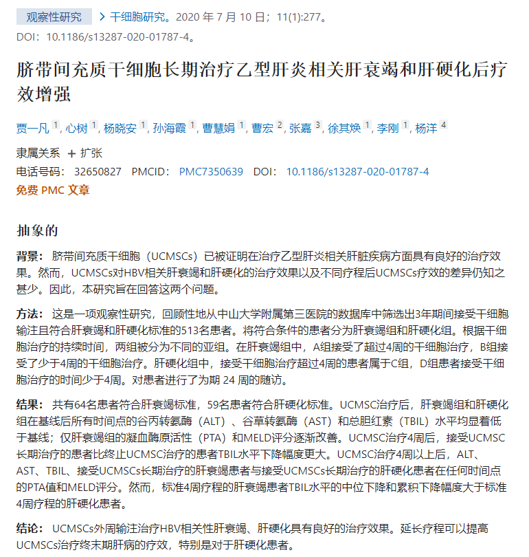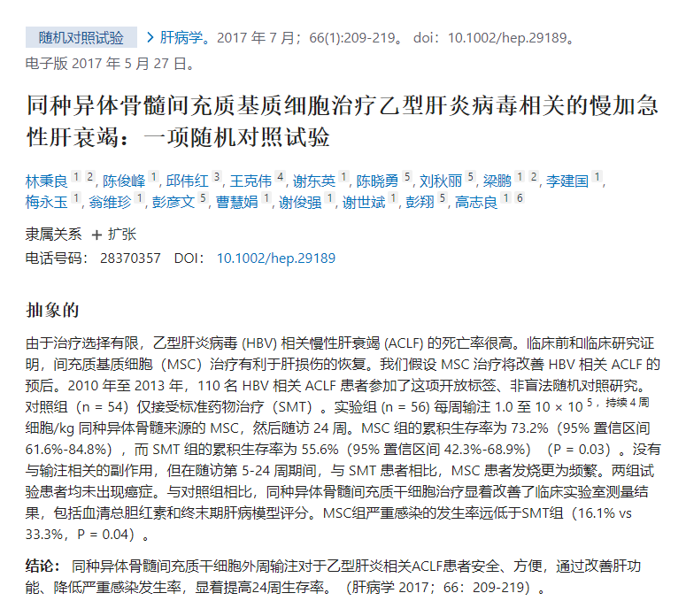 間充質(zhì)干細(xì)胞治療肝衰竭的臨床試驗(yàn)
