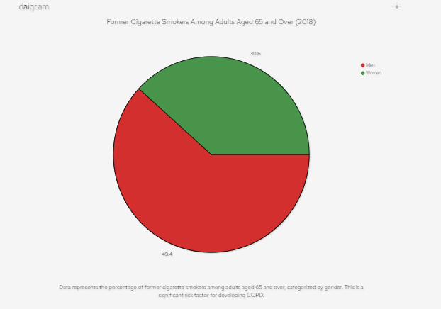 • 2018年,在65歲及以上的成年人中,49.4%的男性和30.6%的女性曾吸煙,這是罹患慢性阻塞性肺病的重要危險因素。