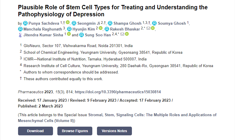 近期,韓國嶺南大學化學工程學院在國際期刊《Pharmaceutics》中發表了一篇關于多種干細胞類型在治療重度抑郁癥方面的作用機制的綜述。