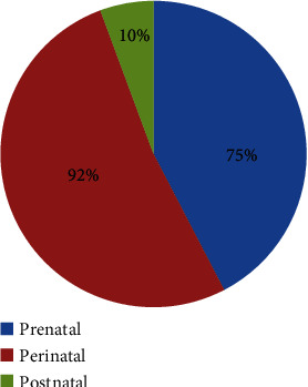 現在眾所周知,CP的主要危險因素是37周前分娩和出生體重低于2.5公斤;然而,還有一些其他問題在文獻中被發現是腦損傷的一些突出原因,其中一些包括發育期大腦畸形、遺傳原因、子宮內母親和胎兒感染以及各種其他問題。可能使發育中的大腦容易受傷的因素分為孕前、懷孕期間和出生后出現的風險因素。一項研究證實,母親受孕前的健康狀況是影響胎兒中樞神經系統的原因之一,在妊娠后期可能會導致腦癱。本研究將孕前定義為母親受孕前的健康狀況,產前定義為妊娠期,圍產期為分娩時,產后為分娩后。