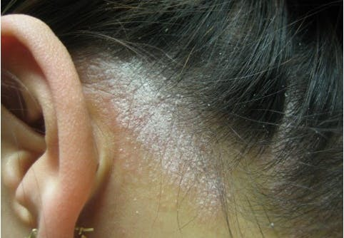 頭皮銀屑病:銀屑病可影響頭皮的任何部位,通常表現(xiàn)為肥厚、發(fā)炎、發(fā)紅的斑塊或銀白色鱗屑斑塊。
