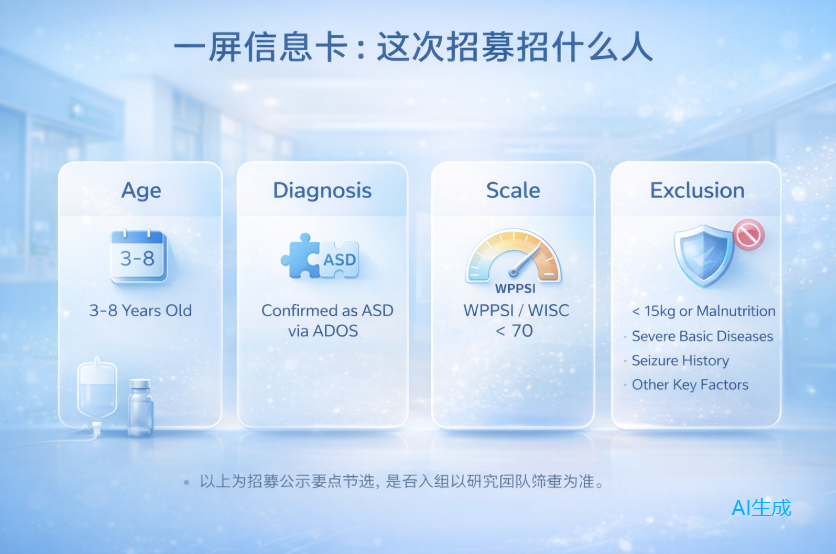溫馨提示:本研究為臨床科研項目,并非常規治療。家長在考慮報名時,請仔細閱讀知情同意材料,與研究人員充分溝通,結合孩子實際情況審慎決定。