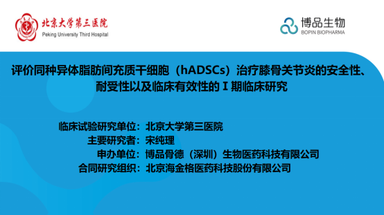 經國家食品藥品監督管理局批準(批準通知書:2022LP01030),由博品骨德(深圳)生物醫藥科技有限公司申辦,北京大學第三醫院骨科牽頭的“評價同種異體脂肪間充質干細胞治療膝骨關節炎的安全性、耐受性以及臨床有效性的Ⅰ期臨床試驗”項目啟動會,于2023年2月15日在北京大學第三醫院順利召開。