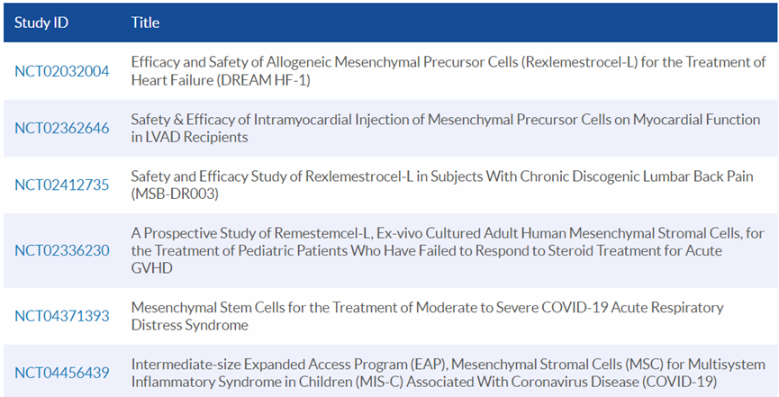 其中,涉及到10家干細胞藥物公司,包括Orgenesis、Mesoblast、Anterogen、JCR Pharmaceuticals、Novatis、Osiris、Stempeutics、Corestem、Creative Medical Technology、Holostem Terapie Avanzate等。