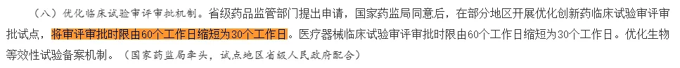 1. 審評審批提速:創新成果更快惠及患者《意見》明確指出,對臨床急需的基因與細胞治療藥物實行優先審評審批,并大幅縮短審批時間。例如,臨床試驗審批時間從60個工作日縮短至30個工作日。這一舉措打通了從實驗室到市場的“最后一公里”,讓科研成果得以及時轉化,更快服務于患者。
