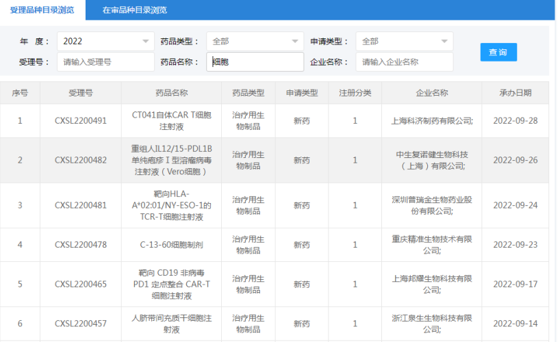 中國干細胞藥物注冊申報進展(2022年9月1日-11月30日)