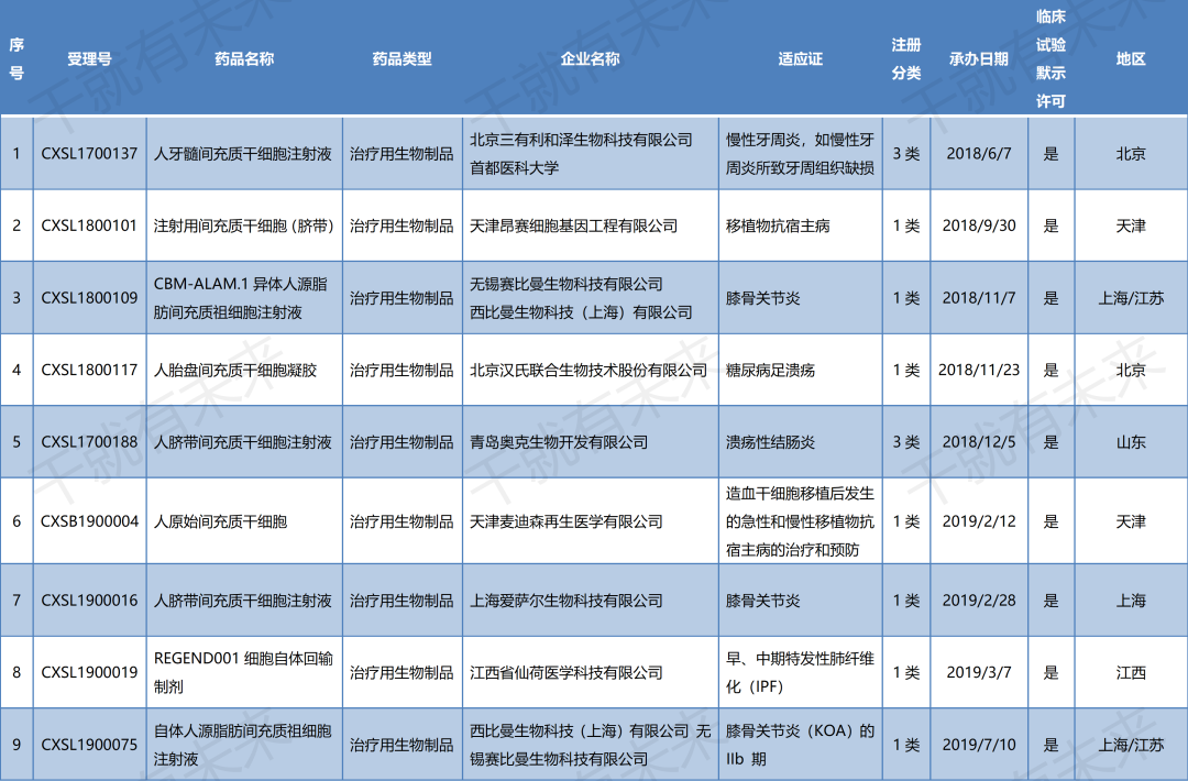 2022年11月22日,武漢光谷中源藥業有限公司“VUM02注射液”(人臍帶源間充質干細胞注射液)的藥物臨床試驗申請獲受理(受理號:CXSL2200586)。這是武漢光谷中源藥業第一款受理的干細胞藥物。